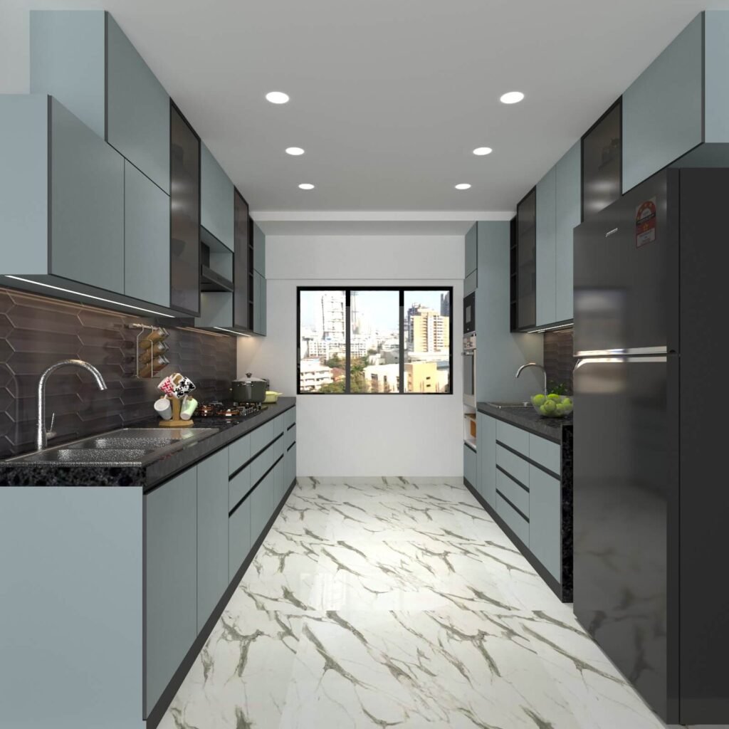 Introducing our stunning Parallel Kitchen, where sleek elegance takes center stage, infusing a touch of modern sophistication into your overall design. The high-gloss laminate finish doesn’t just add poise and finesse; it’s the secret ingredient that ties the entire space together, creating a seamless and stylish look that’s as functional as it is beautiful. Get ready to experience a kitchen that’s not just a cooking space but a work of art, where form and function harmonize effortlessly, and the sleek design elevates your culinary journey. Welcome to the world of our Parallel Kitchen, where modern sophistication meets timeless elegance.